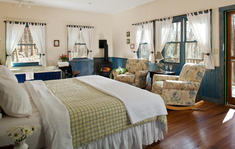 The luxury and loft suites are possibly the most romantic option, featuring two-person whirlpool tubs, cozy fireplaces, picturesque views and unique decor.