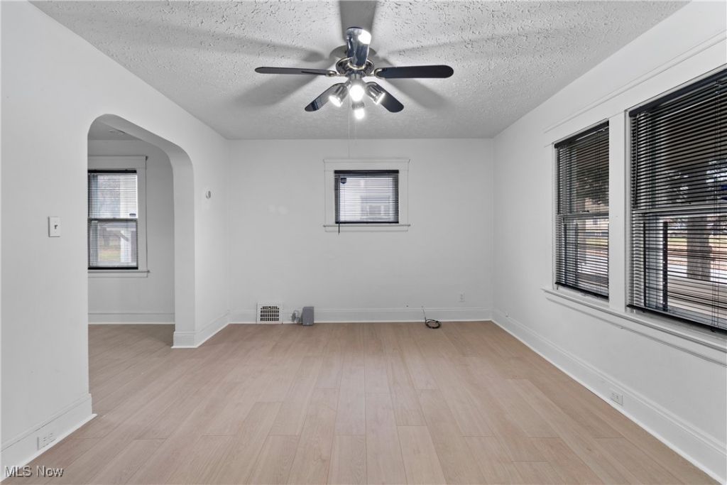Charming, fully remodeled and family oriented Cleveland home. Welcome home to this beautifully renovated Cleveland property, where the major work is already done and every update was made with today's buyer in mind. One of the standout features is the completely brand-new bathroom, remodeled from the studs. This space features a stylish tiled shower, new glass shower doors, brand-new vanity, modern mirror, and new toilet. It offers a clean, fresh feel and the peace of mind buyers love knowing everything is truly new. Inside, you're welcomed by a bright living room filled with natural light, highlighted by multiple windows, durable brand new LVT flooring, arched entryways, and ceiling fans. The dining room flows seamlessly to the deck, creating a convenient setup for outdoor meals or entertaining. The kitchen was taken down to the studs and fully remodeled, offering generous cabinet and counter space along with newer appliances, perfect for anyone who wants a fresh start without renovation headaches. Upstairs, you'll find two bedrooms plus two additional walk-in closets, perfect for a nursery, home office, playroom, or extra storage. The full basement includes laundry hookups and additional storage potential. Outside, enjoy a fully fenced backyard, ideal for entertainment and pets, along with a detached two-car garage for off-street parking and storage. The property sits on .14 acres and is located within the Cleveland Municipal School District. Major updates include a refrigerator installed in 2025, stove in 2024, hot water tank in 2024, air conditioner in 2022, vinyl siding in 2021, furnace in 2018, and a roof installed approximately in 2015. The front and back doors, including frames, were also just replaced in December 2025. With significant improvements already done this home is truly ready for its next owner. Schedule your showing today and see the value for yourself!